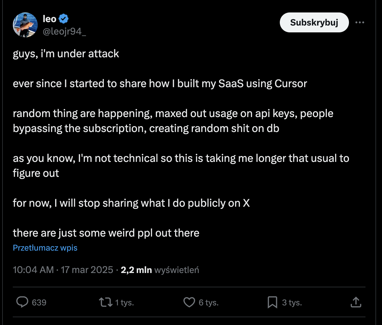 What happened? He didn't properly hide or secure the API keys he was using for OpenAI. Twitter users, being the pranksters they are, started spamming his application, and he ended up with a very large API bill to pay. You don't want to find yourself in that situation.